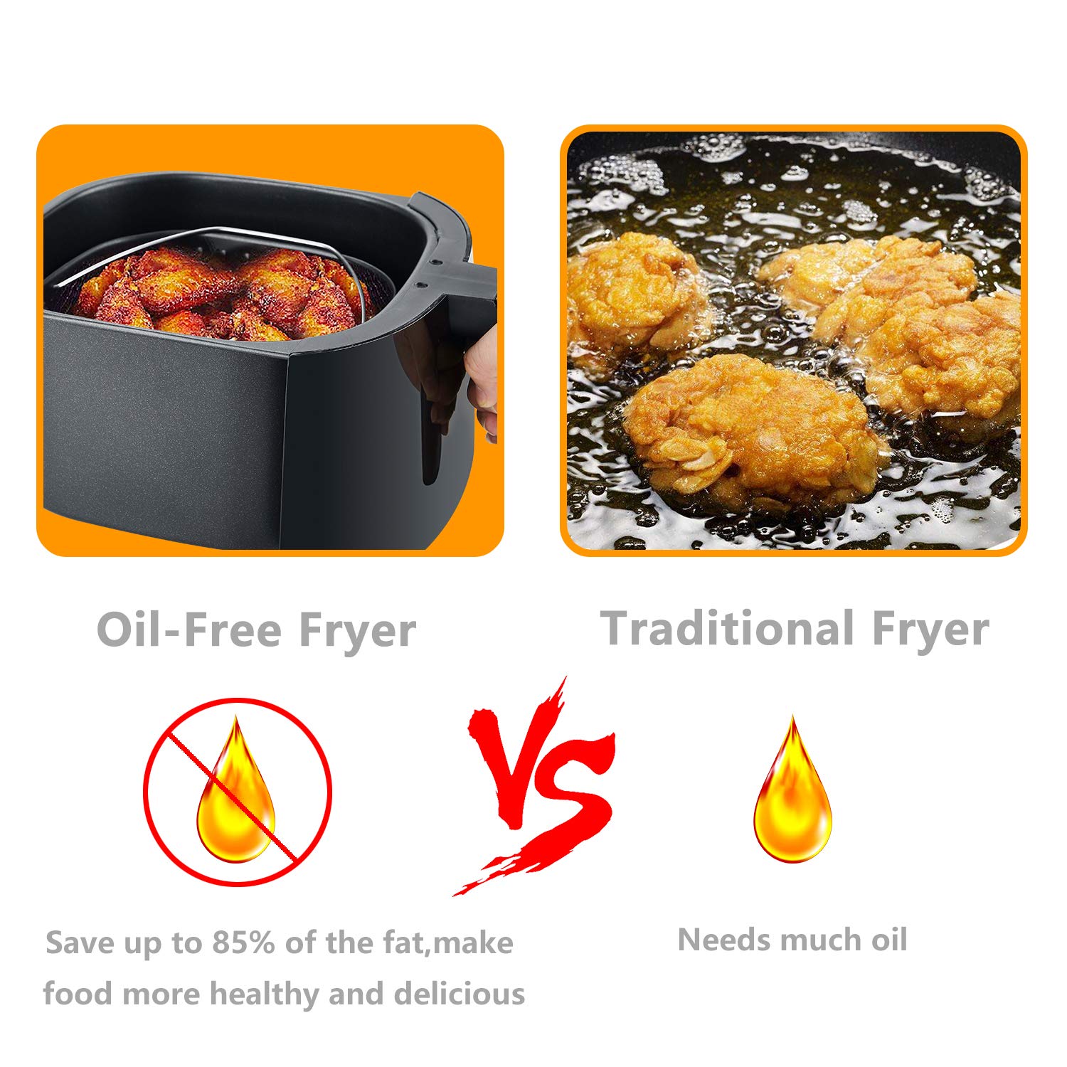 Yongtong AIR FRYER is a healthy way to cook your favorite foods such as fries, and hamburger. By allowing you to cook with less or zero oil, the air fryer is the perfect tool to make healthier meals. In average, you will use less than 70% of oil by using the air fryer.