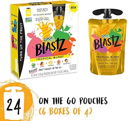 - Bigger fruit pouches on the GoGo made from 100% real fruit in portable, BPA-free, squeezable pouches